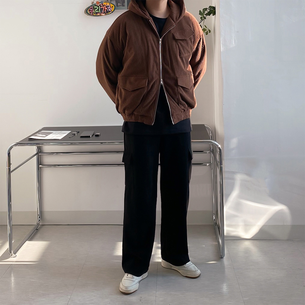 [SET] 코듀로이 퍼티그 후드 숏 패딩 + 밴딩 골덴 팬츠 코디세트