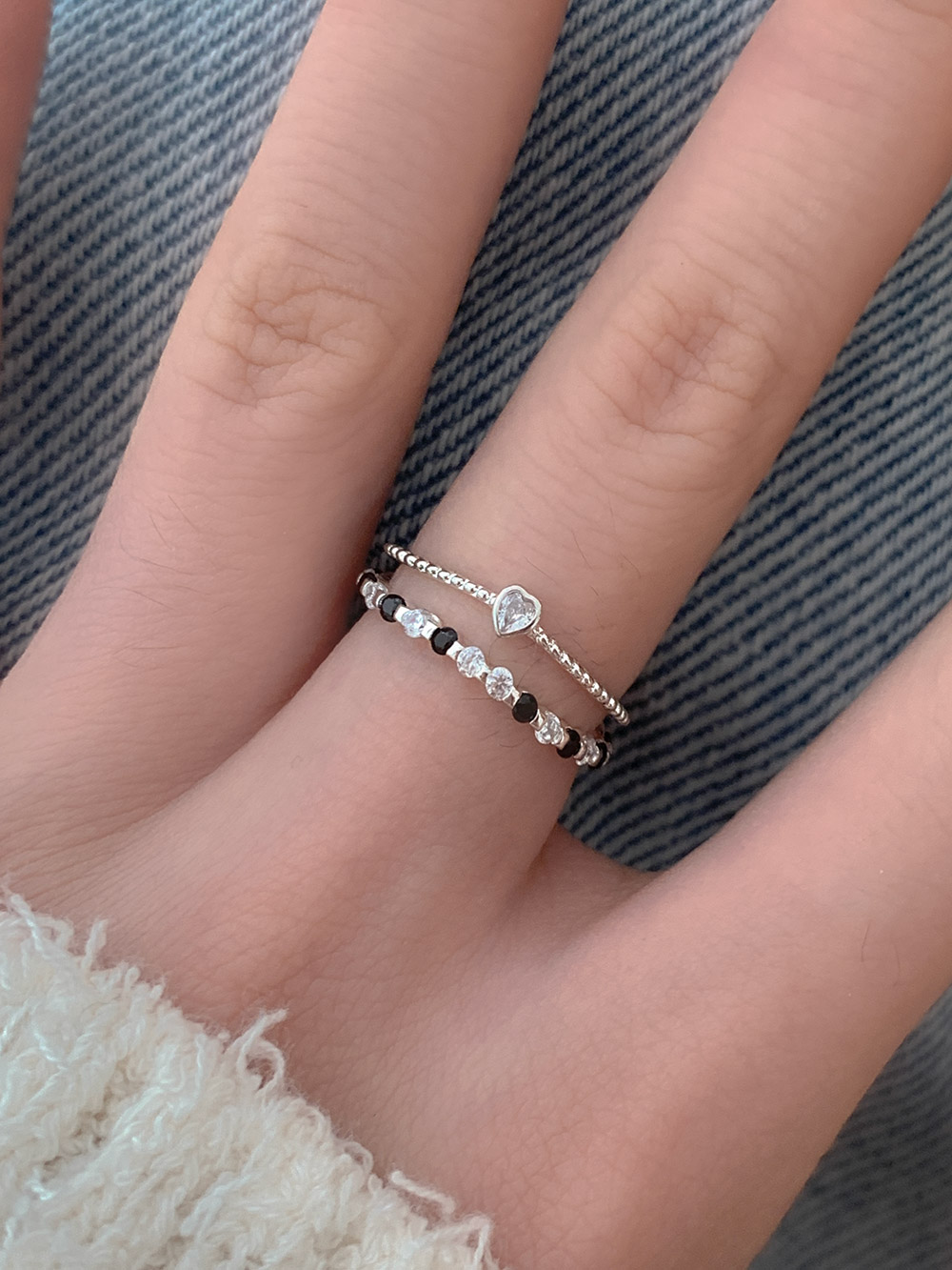 925실버 코코 블랙앤화이트 큐빅 반지세트(one color)