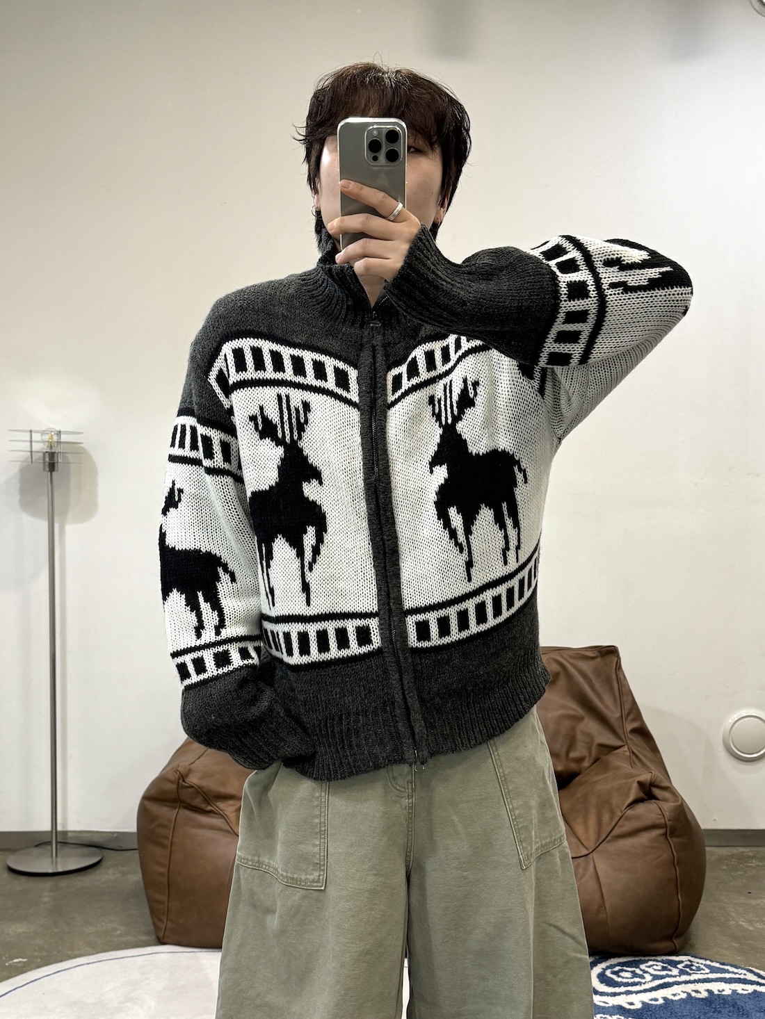 (3COLOR) 코위찬 하이넥 오버니트집업 (코위찬가디건 오버핏가디건 니트집업 니트점퍼 코위찬 코위찬니트 코위찬니트집업 겨울니트집업 겨울가디건)