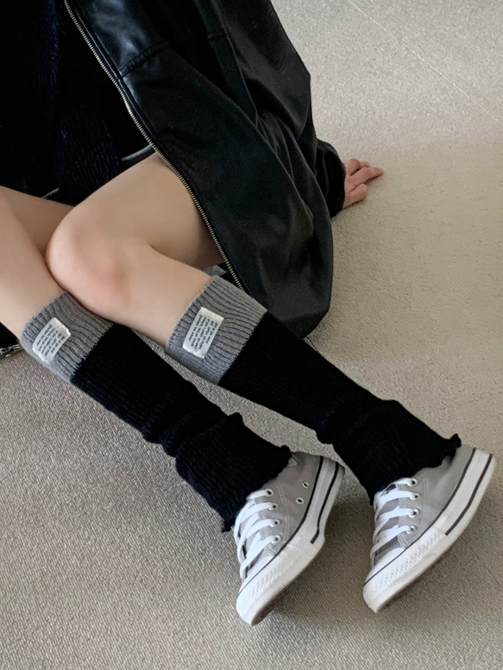 [ 당일출고 / 5color ] 브링도스 배색 투톤 골지 레터링 하이틴 레그워머 발토시 니삭스 양말