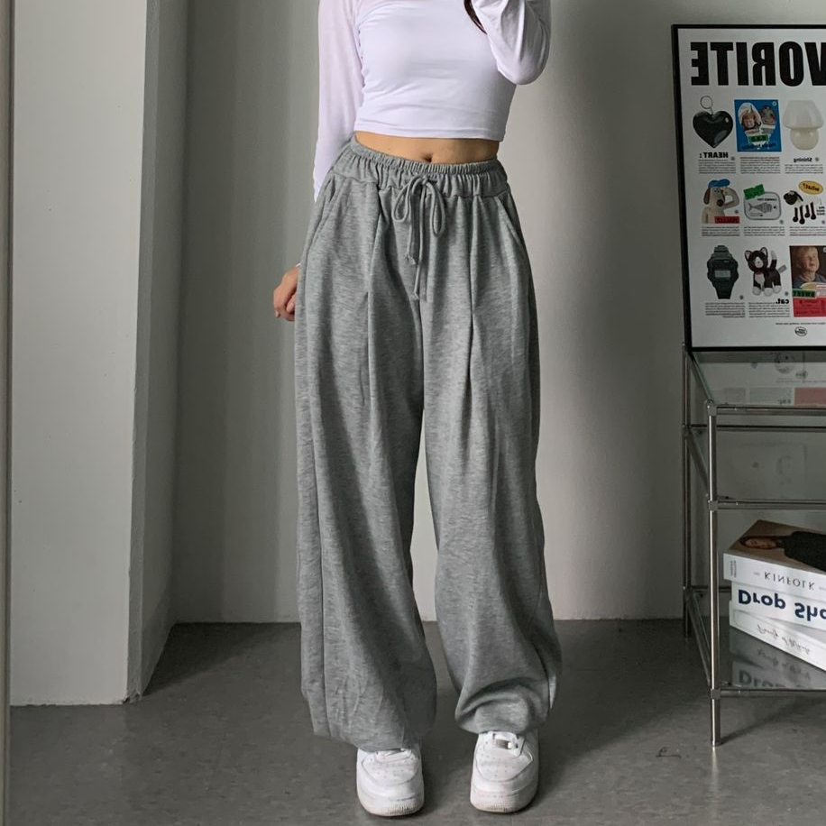 155cm 키작녀 트레이닝 팬츠 허리 밴딩 핀턱 벌룬 와이드 스트링 조거 하이웨스트 바지