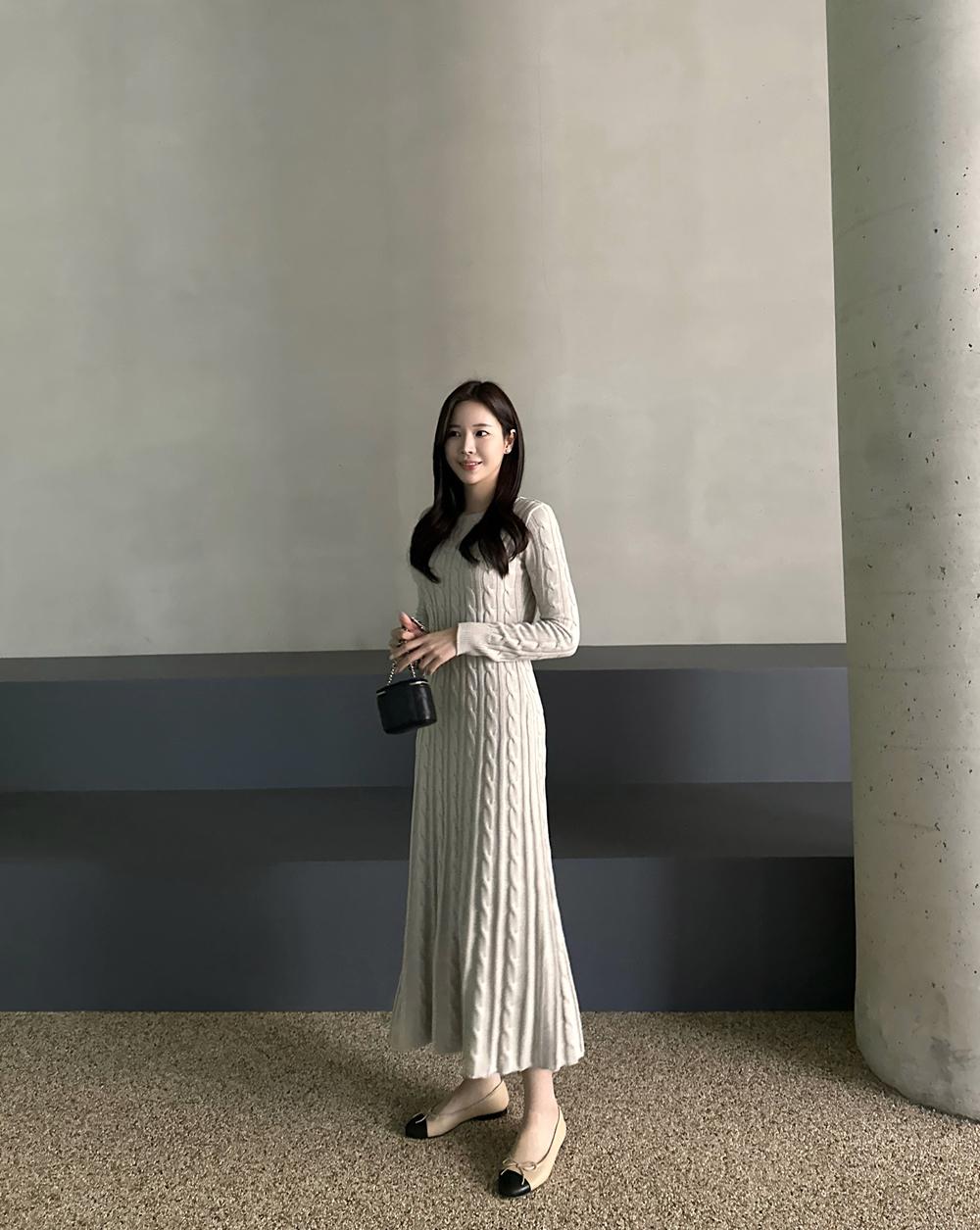 케이블 꽈배기 머메이드 니트 롱 원피스