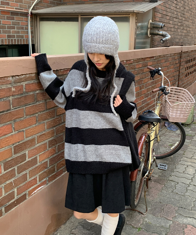 카리온 부클 니트 귀달이 모자
