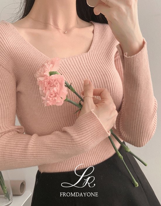 Made)오브여리 브이스퀘어넥 골지니트(긴팔/여리슬림핏/트임/베이직/데일리룩/데이트룩/출근룩/겨울)