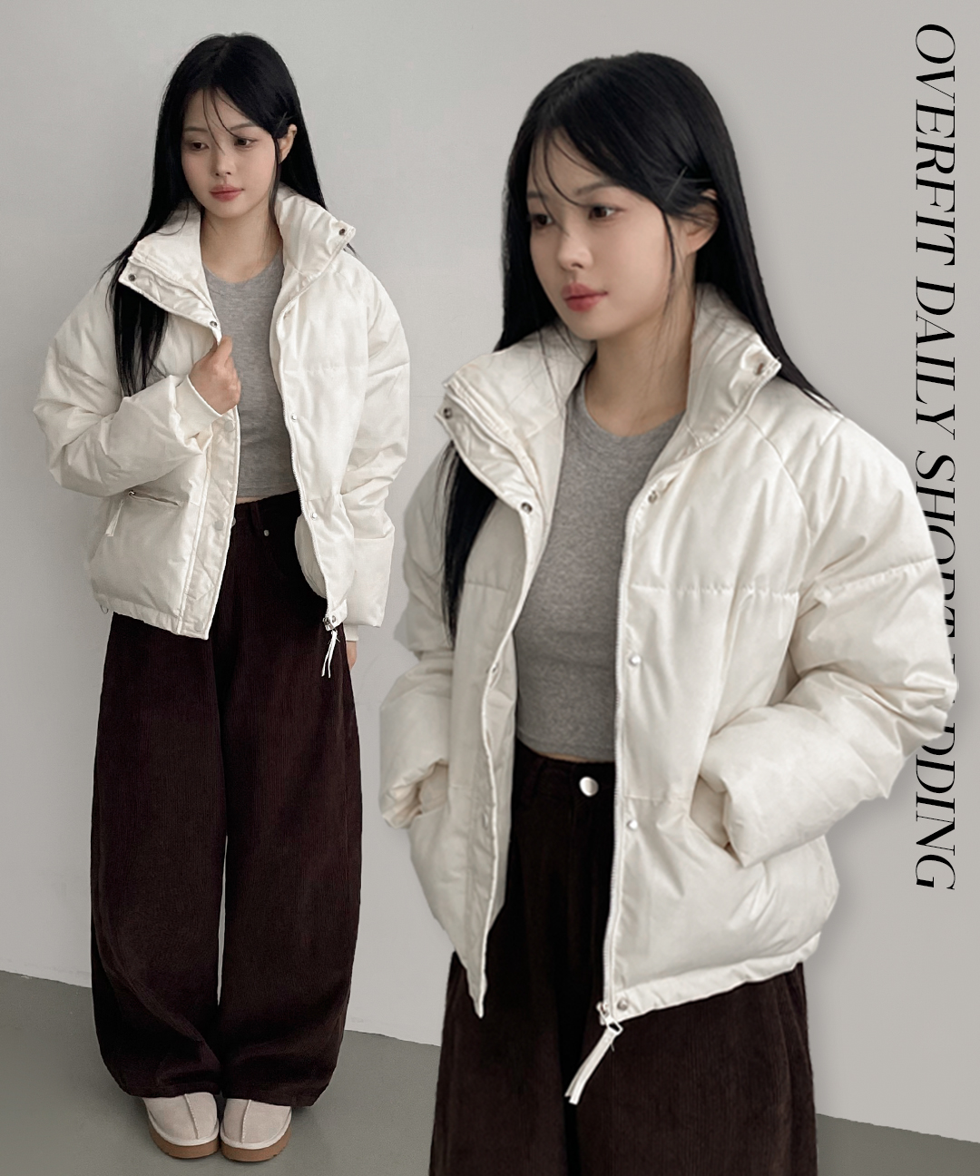 어릿 지퍼 오버핏 숏 패딩