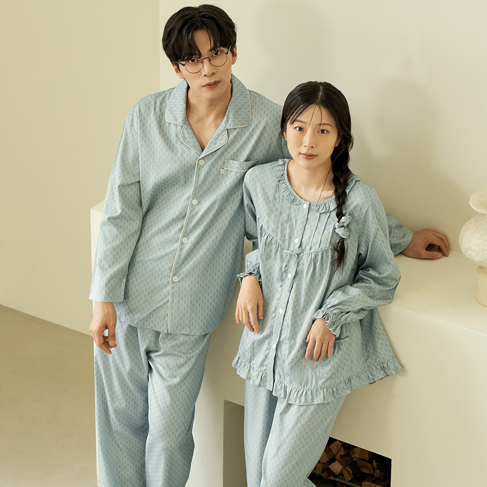 보리 긴팔 모달 면 커플 빅사이즈 잠옷 세트