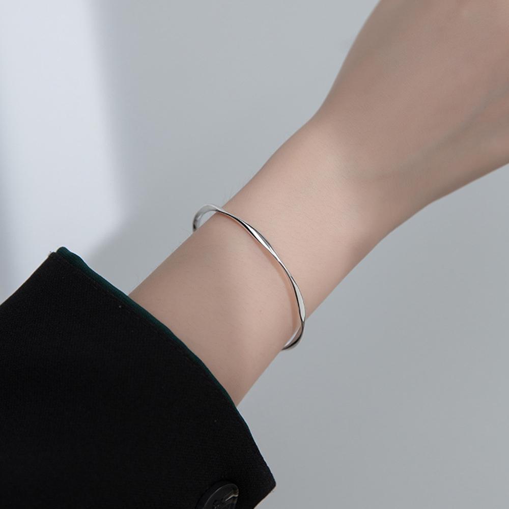 실버 925 슬림 웨이브 뱅글 은 팔찌 W099