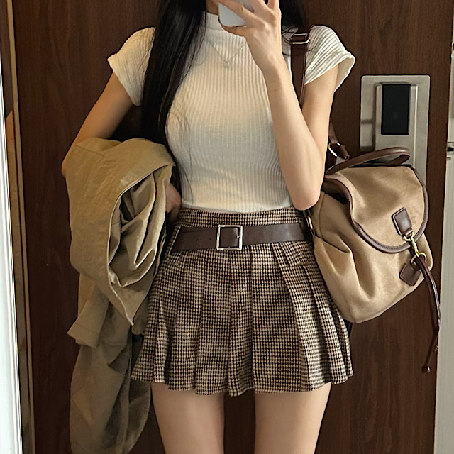 [ 겨울 치마🔥벨트 set ] 메이 모직 플리츠 주름 테니스 로우 미니 스커트 치마 바지