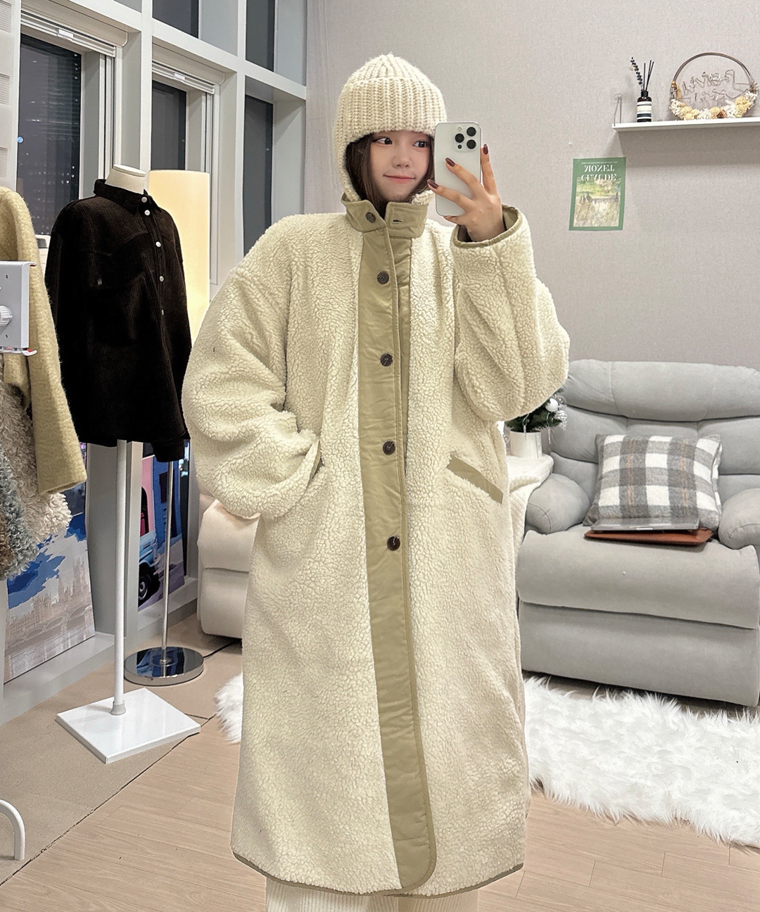 [빅사이즈] 오버핏 양털 리버시블 야상 양면 롱점퍼