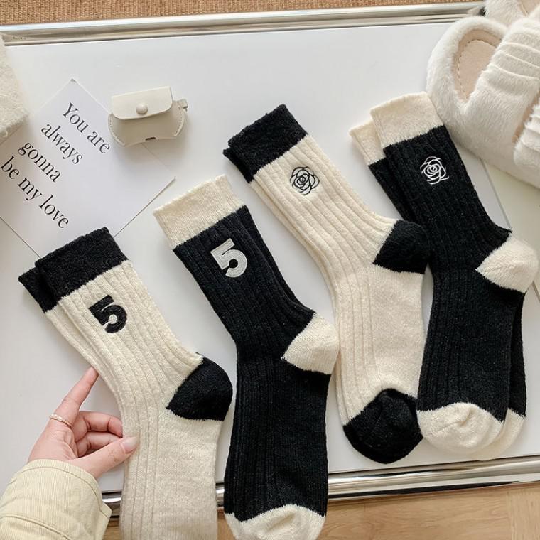 더벳스 여성 자수 중목 양말 4종 세트