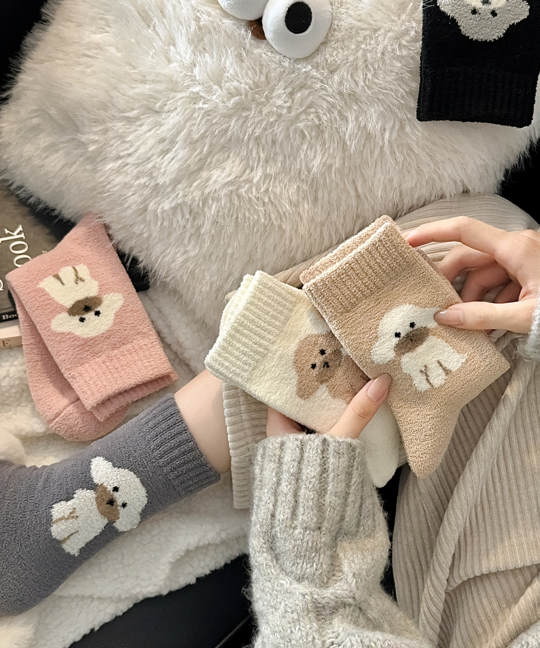 [5켤레] 겨울 따뜻한 기모 융털 여성 수면 중목 발목 양말 세트 5Color