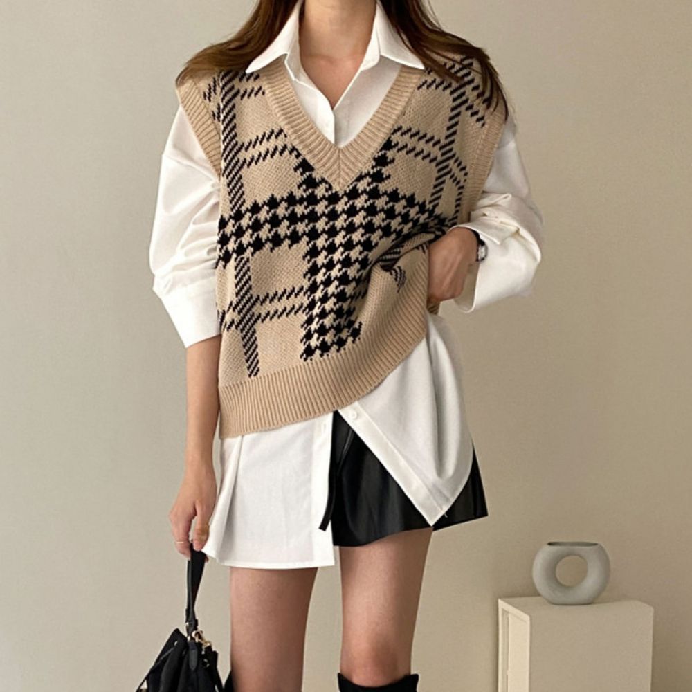 체크 니트조끼 니트베스트 여성니트 격자무늬 베스트2컬러 여성