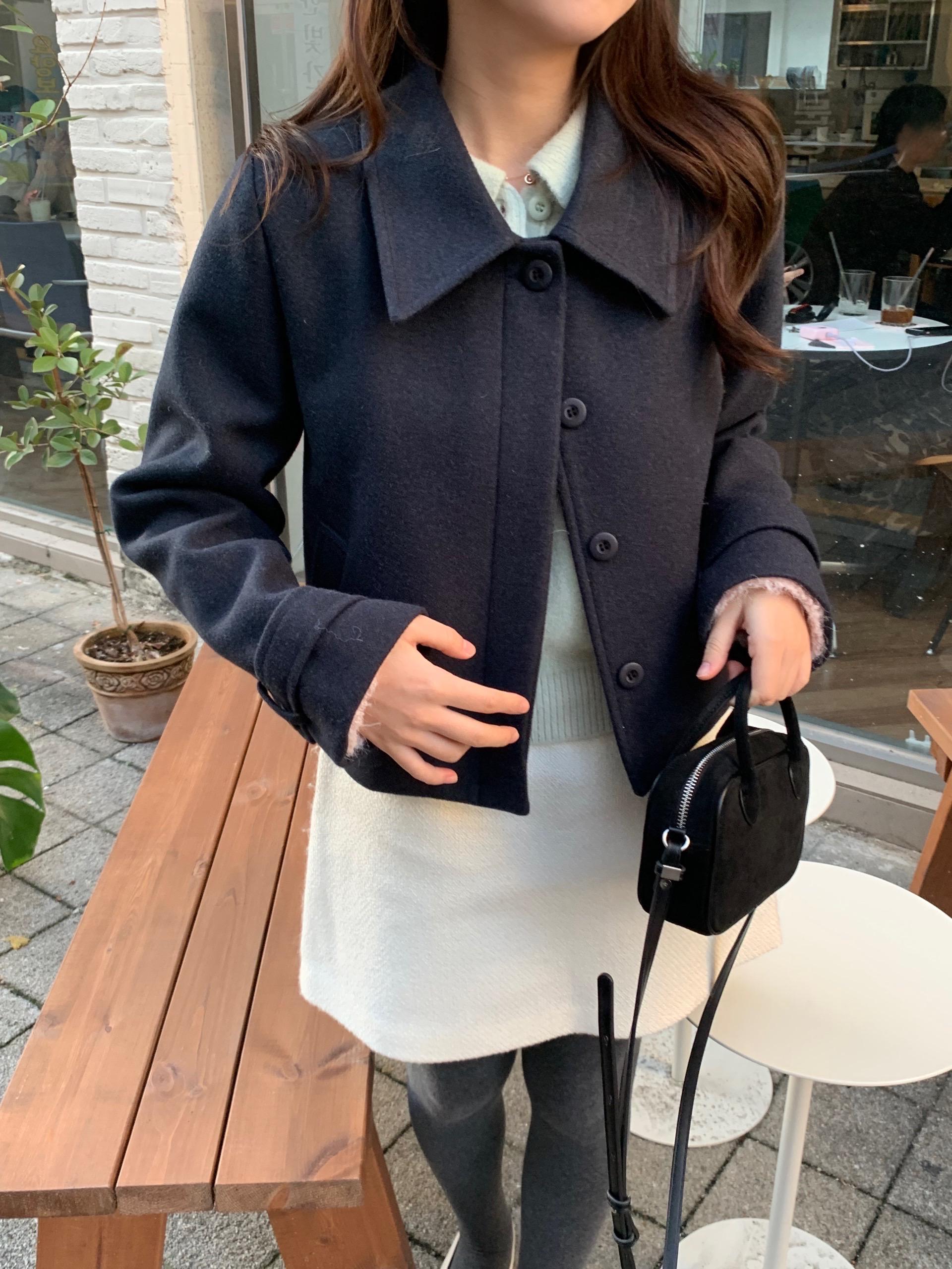 [합포원단] 미엘 히드버튼 카라 숏 코트 자켓