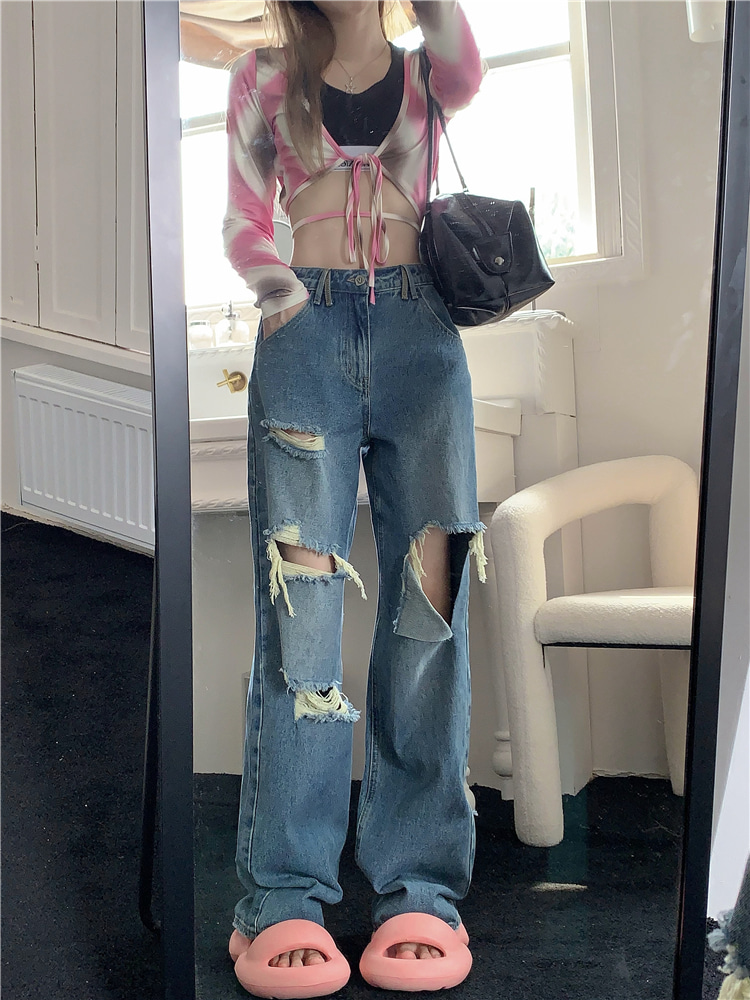 찢어진 스트릿 와이드 데님 팬츠 2color 데일리룩 여친룩 캠퍼스룩 촬영룩 여행룩