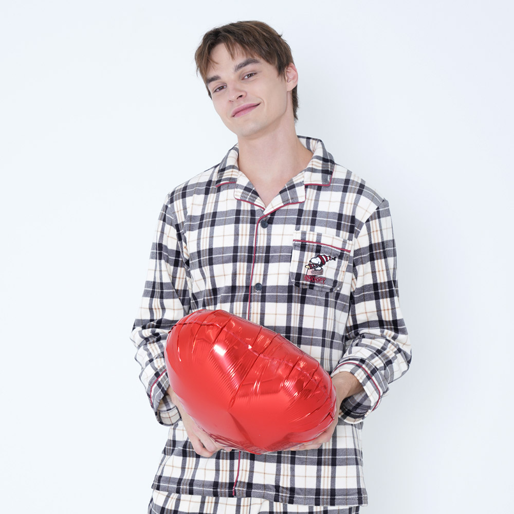 [스누피 잠옷] 공용 밍크 극세사 스판 9부 파자마_홀리데이 스누피 그레이