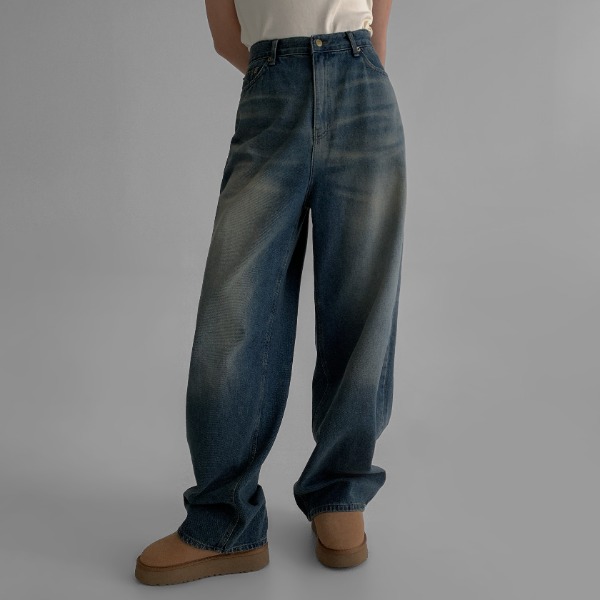 [키큰여자]OOTJ 멘크*빅캣브러시워싱와이드데님팬츠