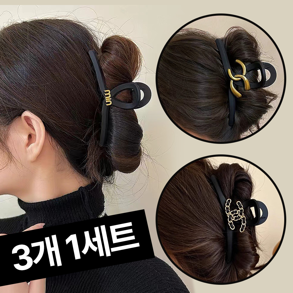 [집게핀3종세트] 13cm 빅사이즈 럭셔리 로고 헤어 집게핀 올림머리 대형 헤어핀