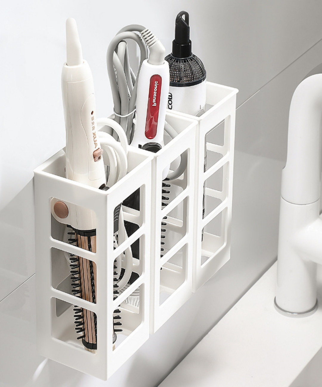 고데기 거치대 걸이 홀더 정리함 수납 매직기 선반 꽂이 접착식 무타공 롤빗 욕실 화장실 정리 용품 후크 벽부착 KK0183
