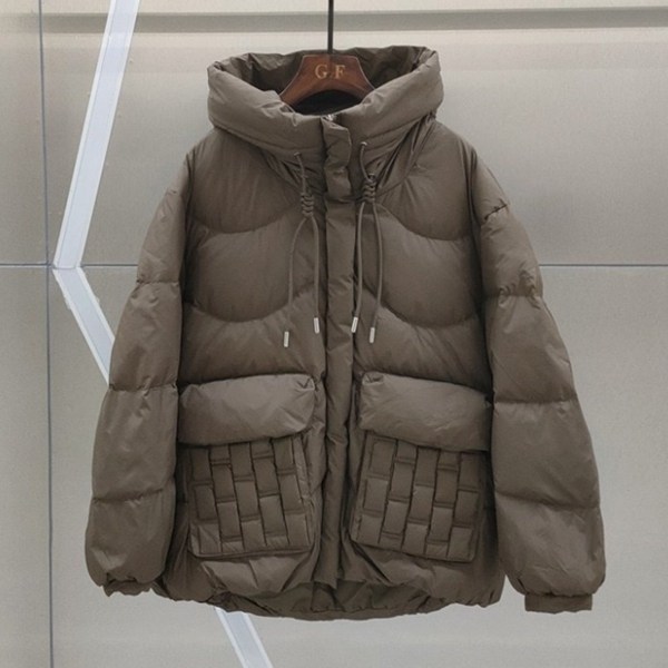 [애슬릿] 여성 패턴 주머니 후드 숏 겨울 패딩 자켓