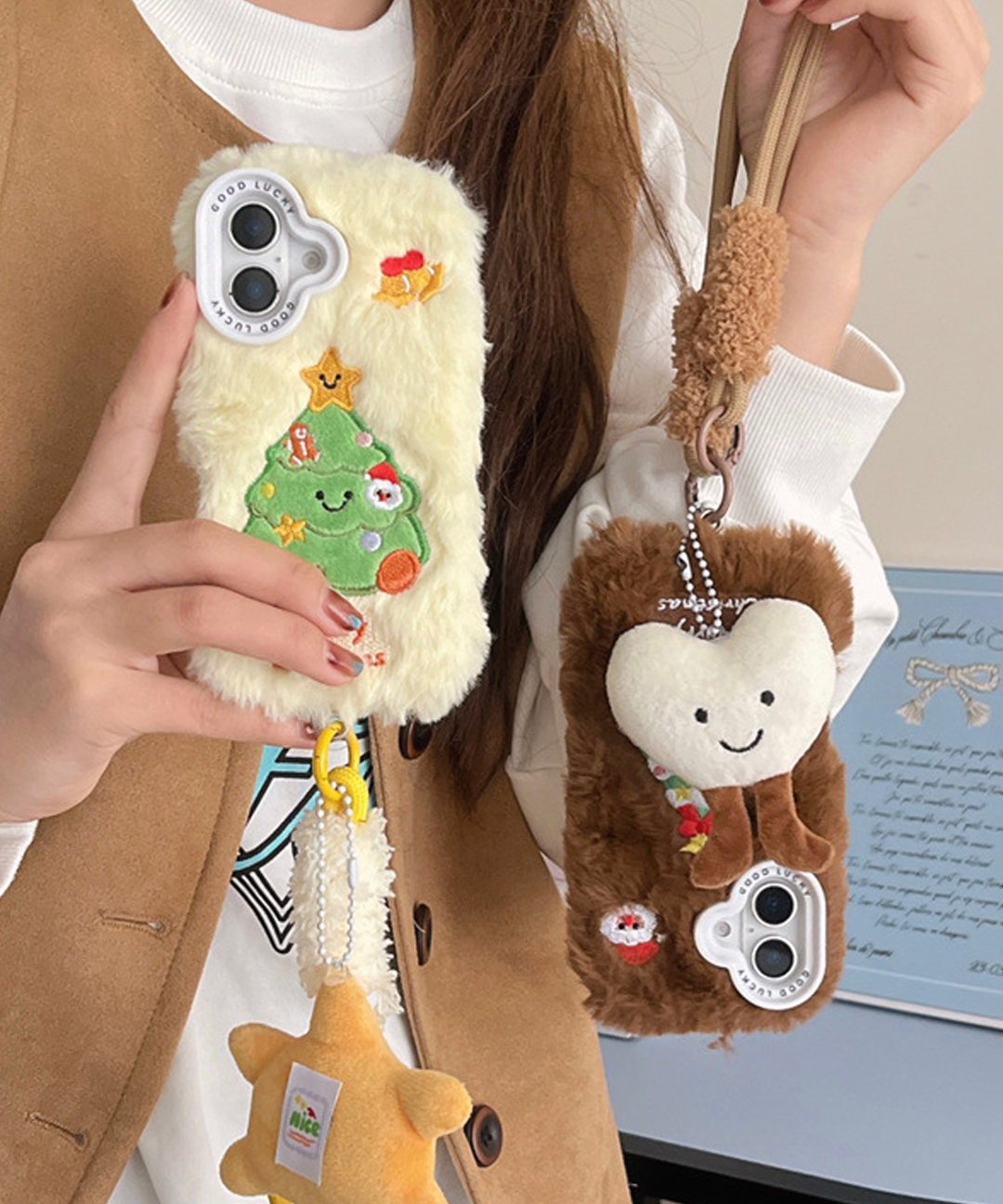 태그홀더 별 인형 키링 스트랩 크리스마스 뽀글이 털 퍼 실리콘 아이폰16 아이폰15 아이폰14 아이폰13 아이폰12 프로 맥스 따뜻한 겨울 트리 자수 모피 범퍼 케이스