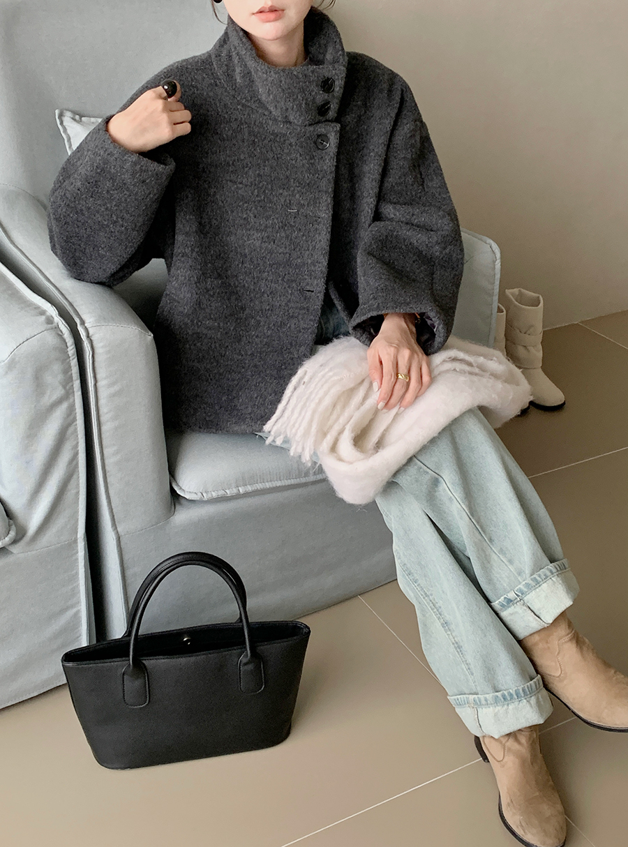 [🔥하객룩#오버핏]모헤어 하이넥 버튼 숏 코트
