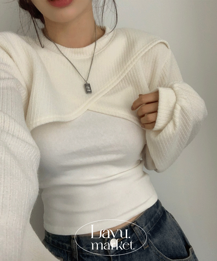 볼레로 느낌~랩스타일 언발 크로스 크롭 볼레로 맨투맨 3color [모헤어/크롭맨투맨/볼레로/크로스맨투맨/레이어드]