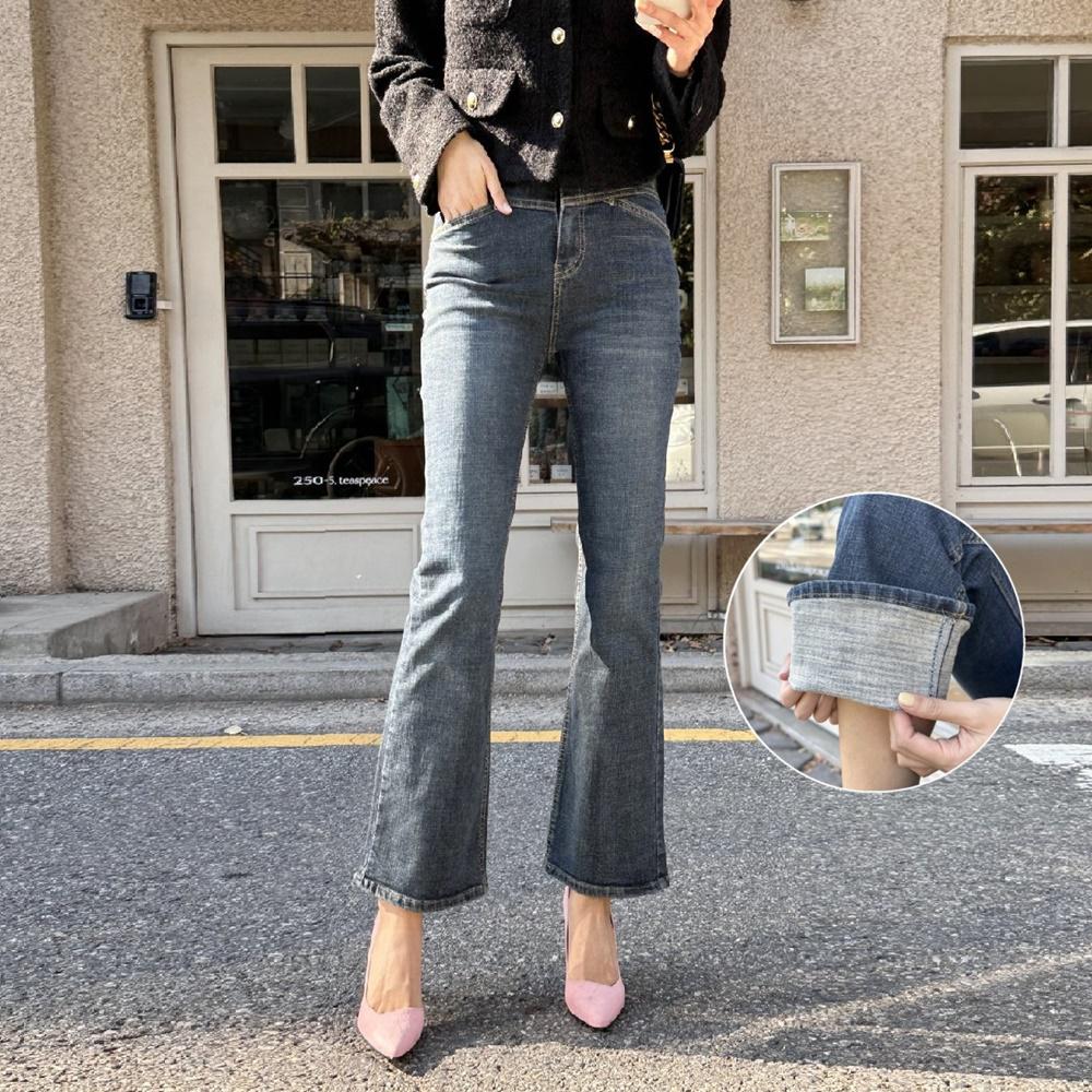기모 투버튼 히든밴딩 스판 부츠컷 청바지 겨울청바지