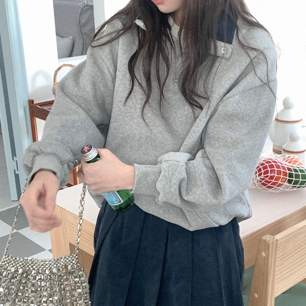 메비아 양기모 하이넥 버튼 맨투맨