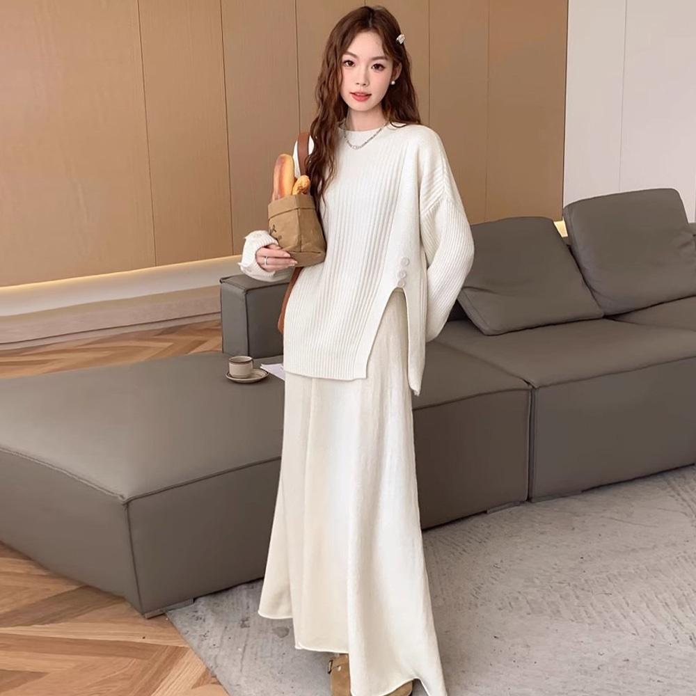 여성 가을 겨울 니트스커트세트 투피스 셋업 플레어 롱 스커트 치마세트