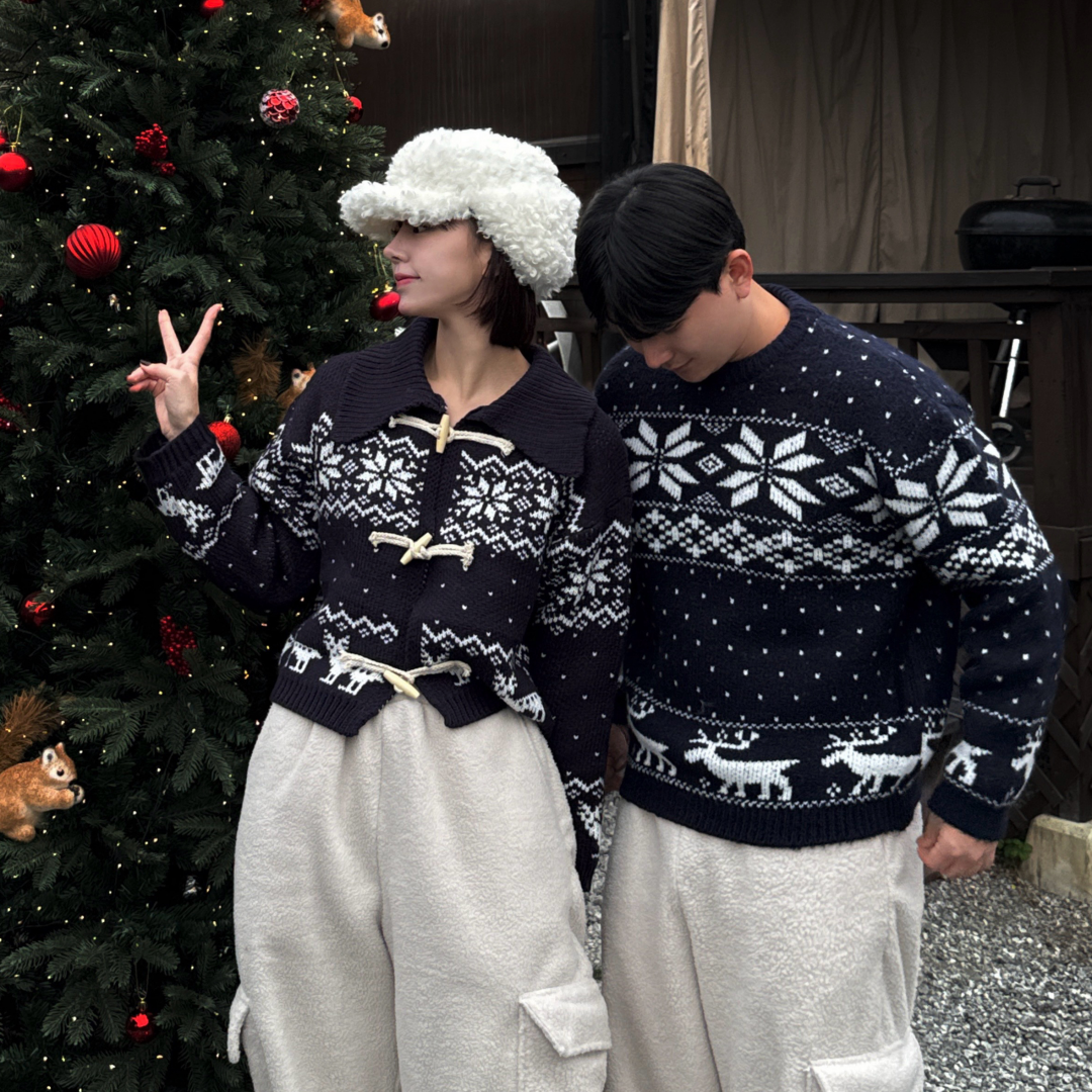 [단독❤️/☃️폭닥소재☃️/고퀄리티] 니스 도톰 디어 노르딕 가디건 캠핑 겨울 삿포로 여행 커플시밀러룩