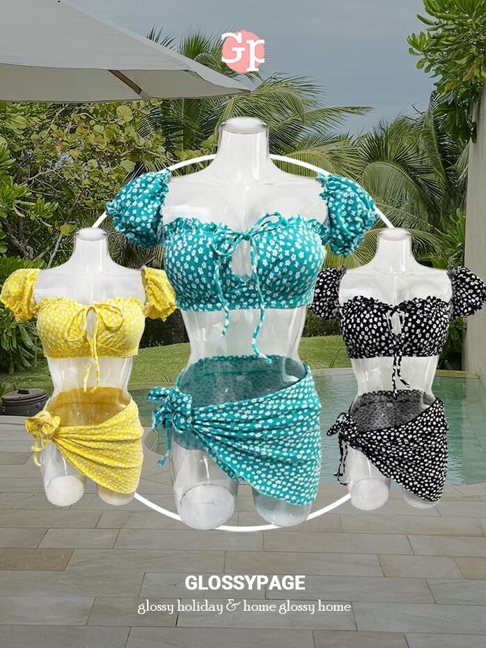 [3칼러/3피스] 제리 퍼프 플라워 비키니세트 / 스커트세트 프릴 스윔웨어 수영복
