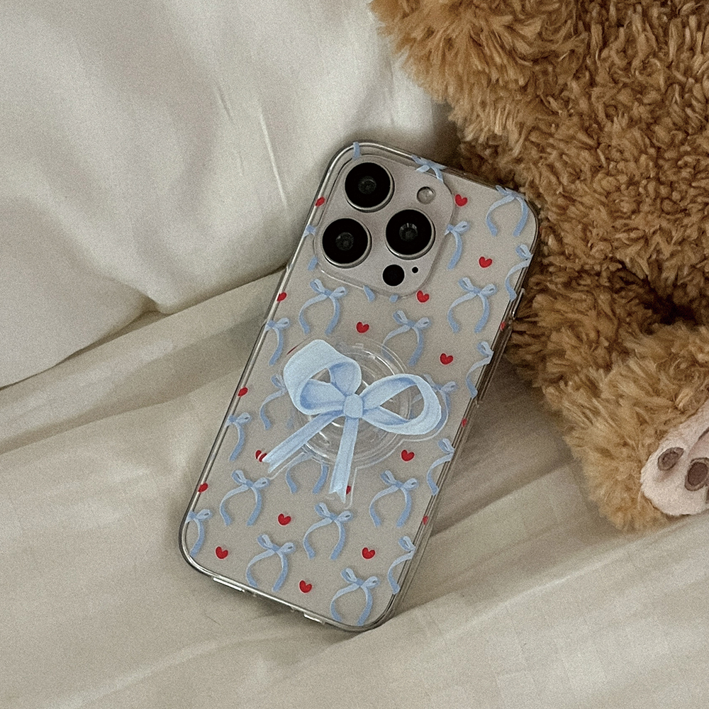 vintage blue ribbon pattern 디자인 [클리어 폰케이스]