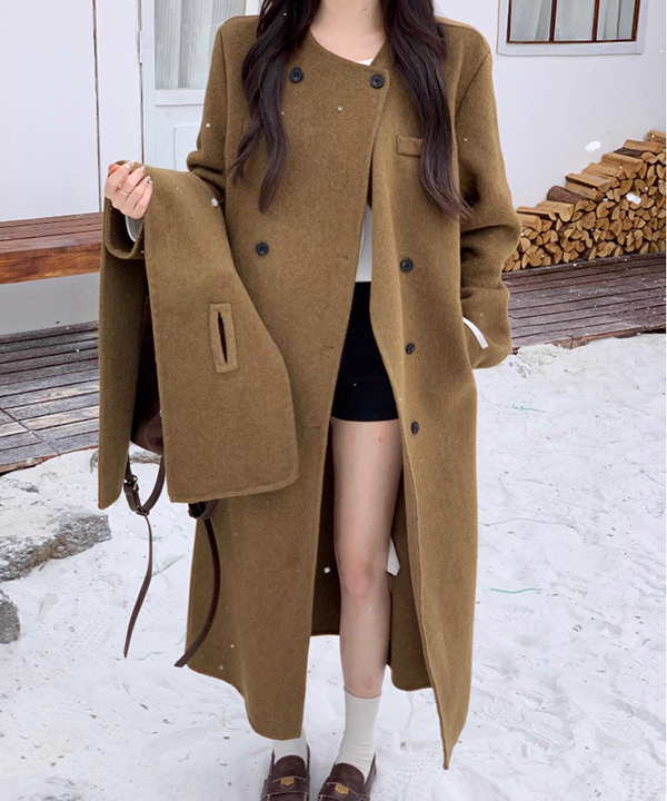 당일출고 겨울거리 더블모직 롱코트 +머플러증정 (브라운) [SALE 35%]