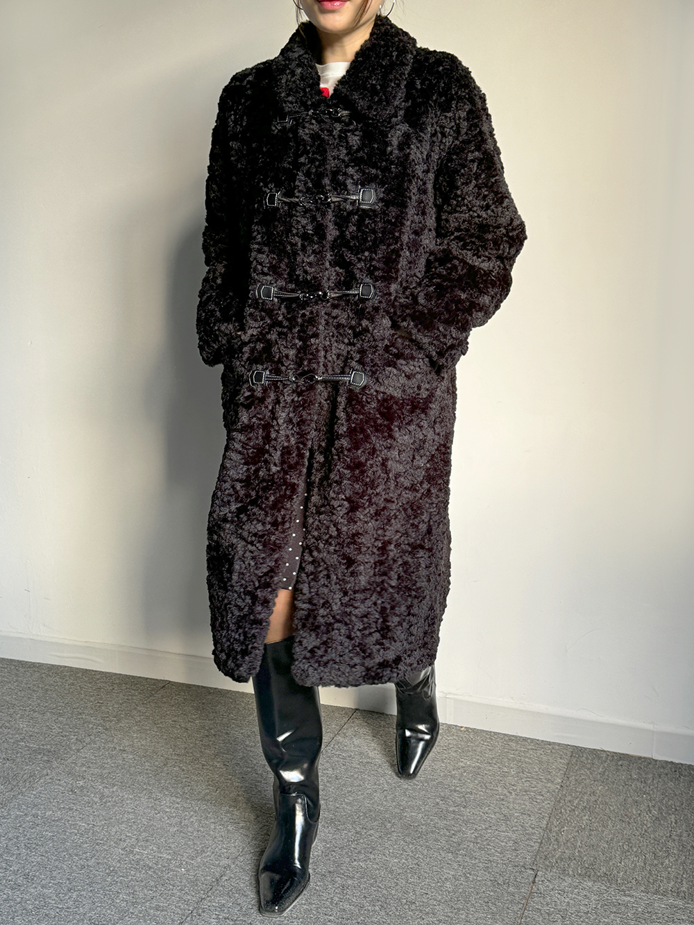 [털빠짐X/하이퀄] 떡볶이코트 블랙 스웨이드 롱 무스탕 겨울 퍼코트