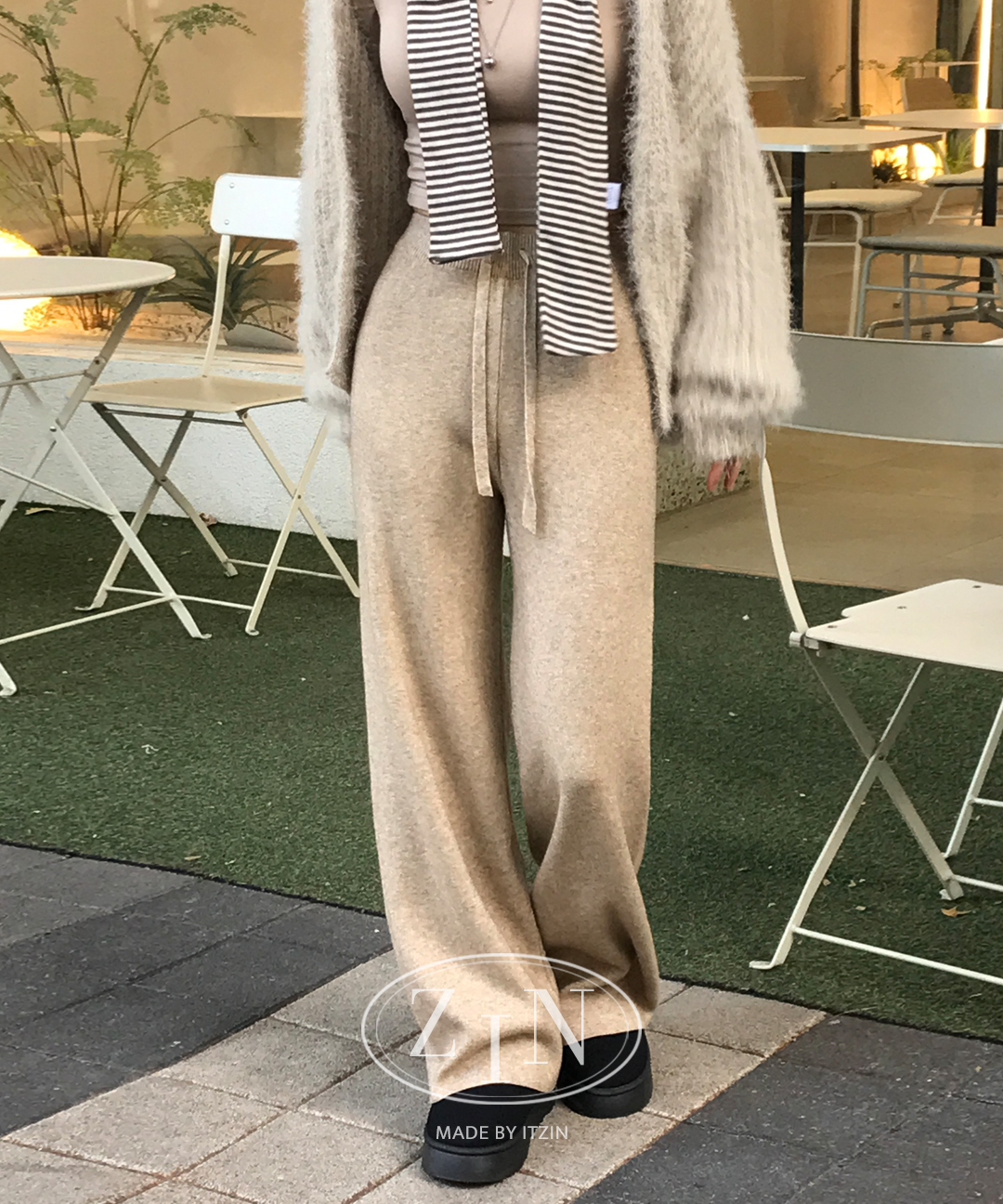 [made/예쁜핏보장/2단기장] 소프트 베이직 롱 와이드 밴딩 니트 팬츠 3color