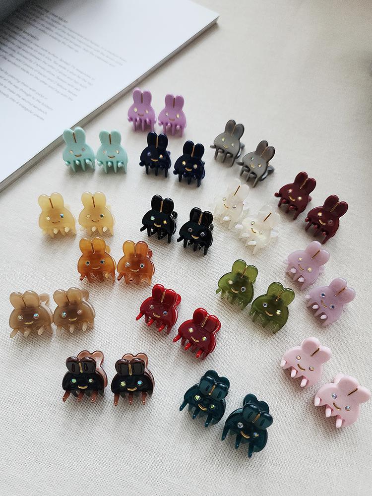 프랑스핀 2개1쌍 큐빅 토끼 앞머리 미니 집게핀