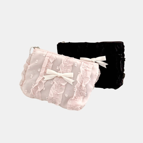 [3색] 발레코어룩 레이스 리본프릴 화장품 파우치 동전지갑백