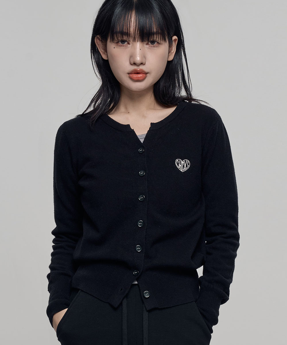 MVK 하트 스티치 미니 브이넥 니트 블랙