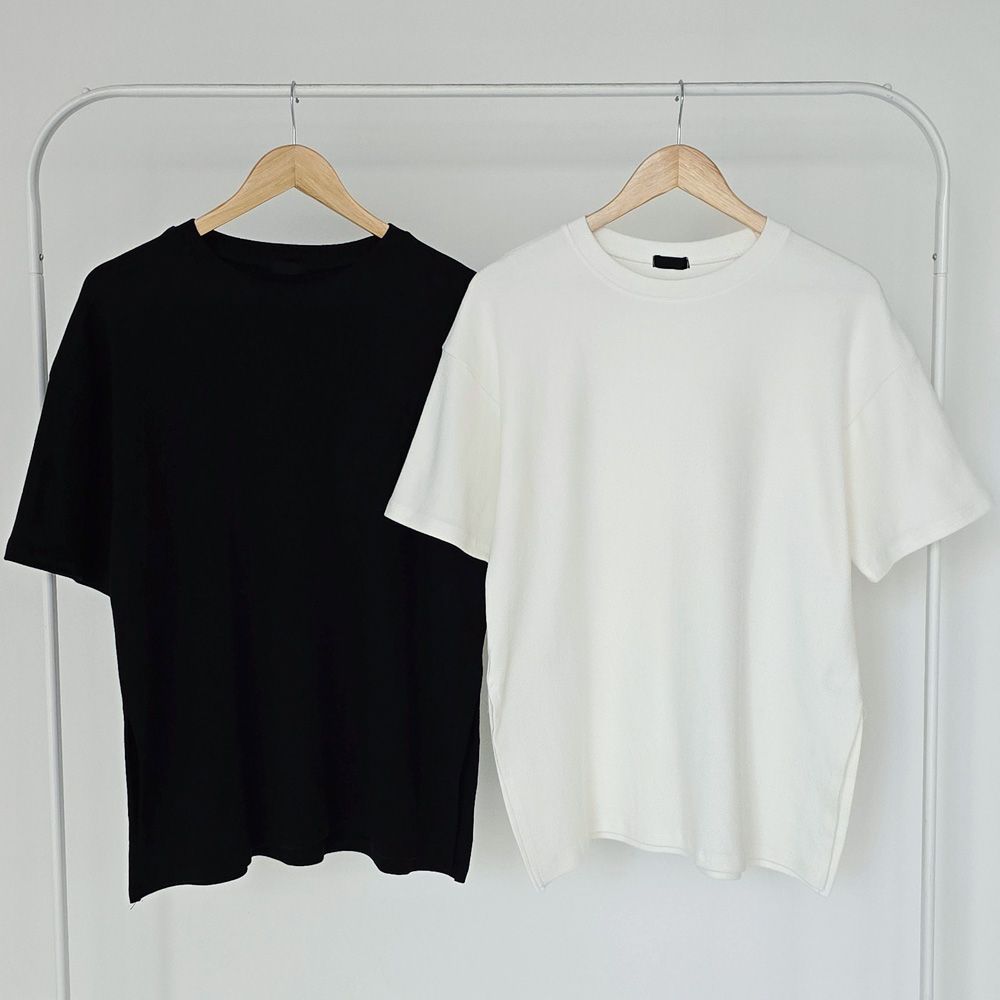 (~88/빅사이즈/통통녀코디) 무지 라운드 피치 기모 도톰 겨울 반팔티 (2color)