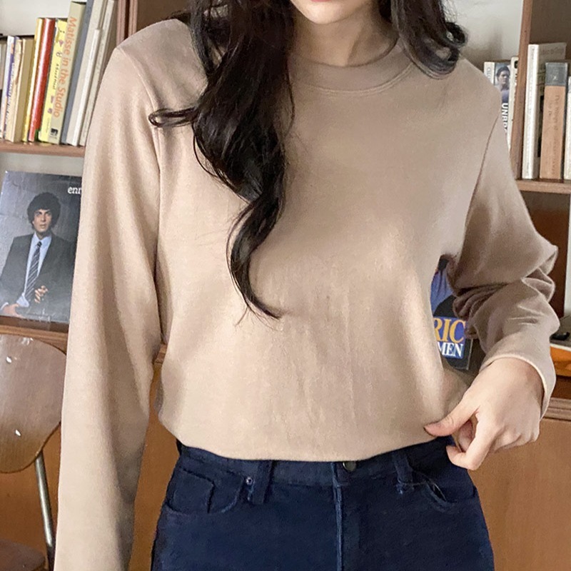 파스텔톤 롱 슬리브 기본 기모 겨울 긴팔 티셔츠