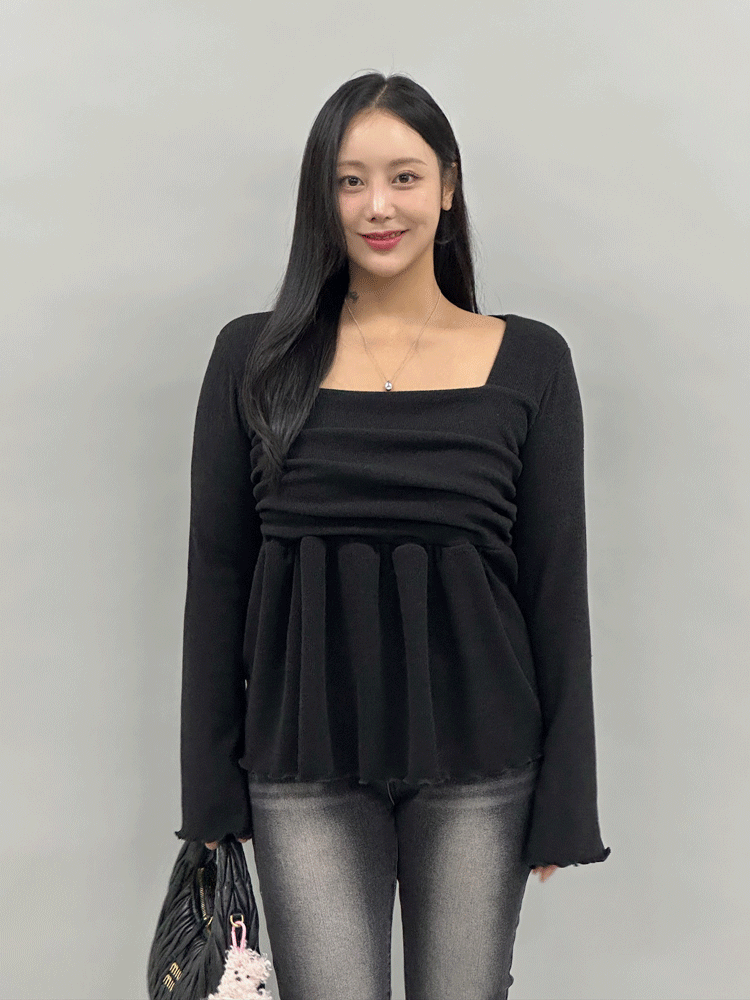 1587(빅사이즈) 치즈 플레어 스퀘어넥 프릴 블라우스[2color/44-88]