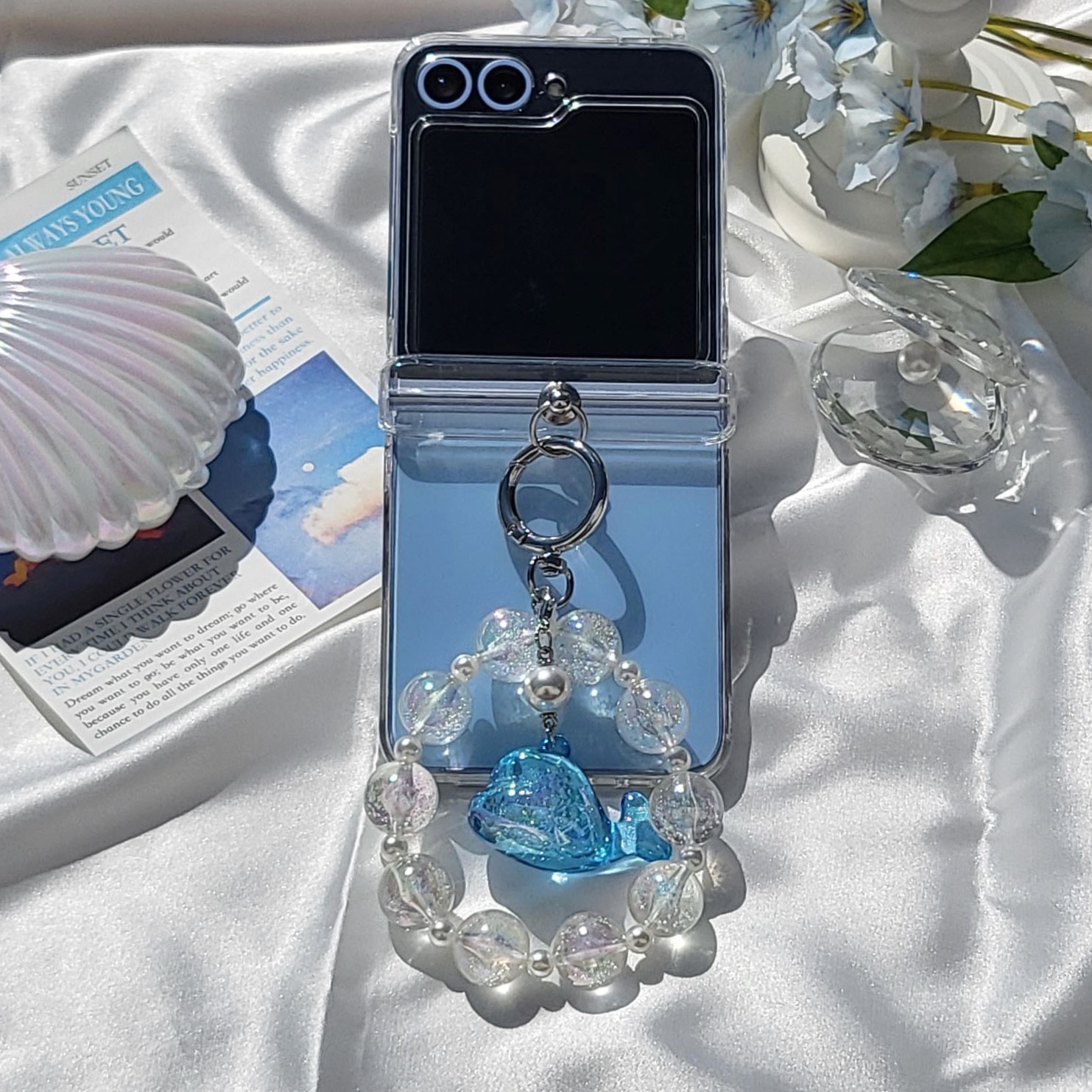Z플립3 4 5 6 7 힌지 보호 케이스 & 오로라 버블 돌고래 비즈 스트랩 키링