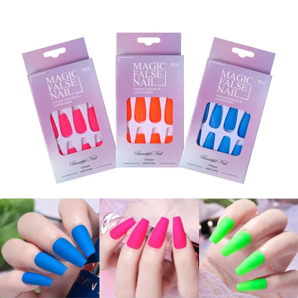 네일아트 간편 부착 형광 네일팁 24p 세트 18종