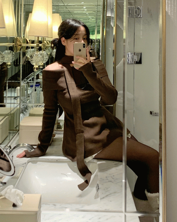 [무료배송][타이set]나티 오프숄더 사선 트임 니트 티셔츠 3color