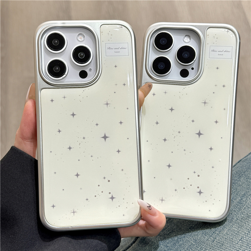당일🚀, 우유빛깔 우주별 실버프레임 아이폰케이스 / 아이폰 17 16 15 14 13 프로 프로맥스 실버 실버스타 유니크 고급 아이보리 크림색 폰케이스