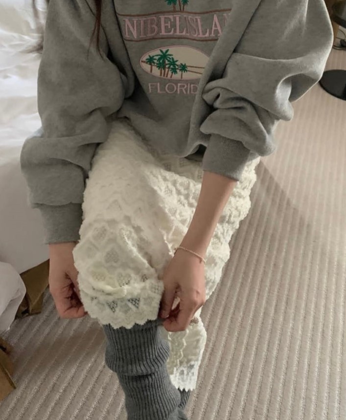 [당일] 프영띵 하트레이스스커트 롱스커트 겨울 밴딩 레이스 h스커트