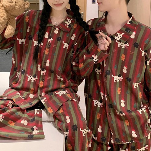 스노우맨 피치기모 긴팔 커플 파자마 잠옷 세트
