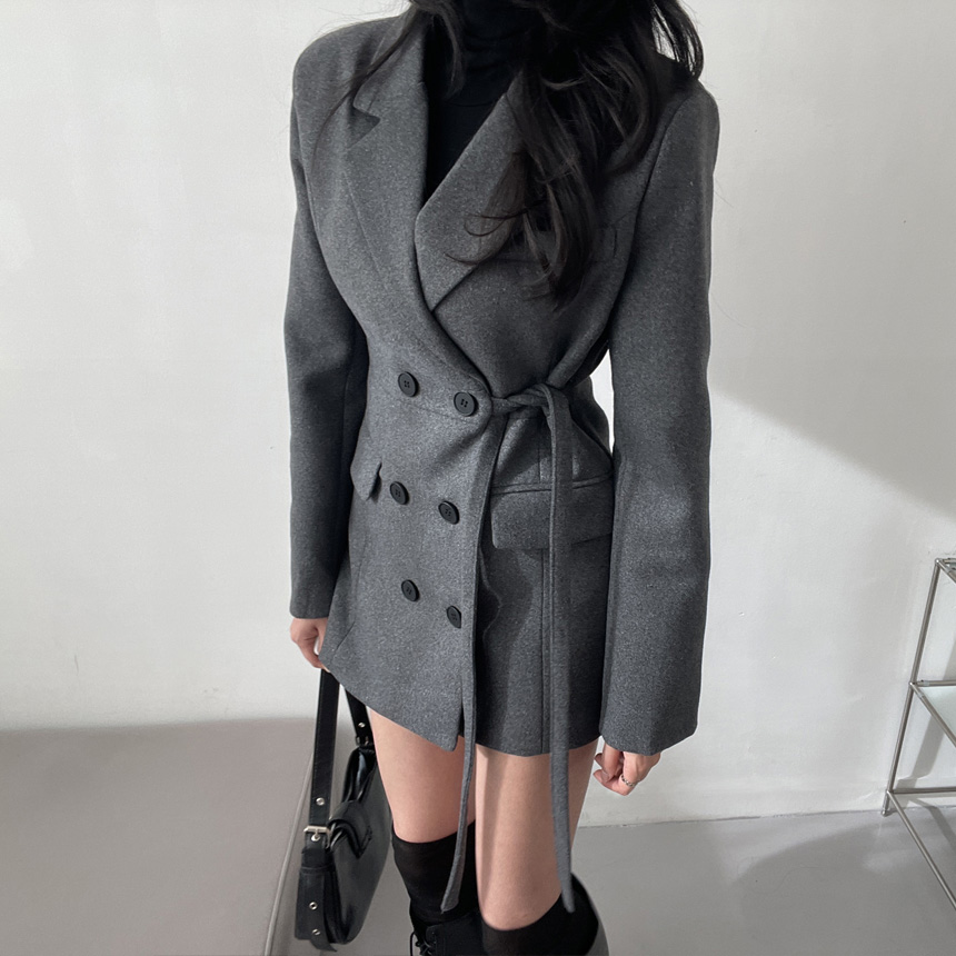 (꾸준한인기)모델강추[두께감/고퀄]더블 버튼 사이드 벨트 카라 코트 자켓 원피스