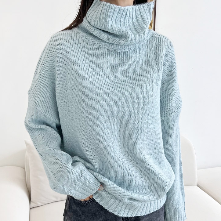 여성 소프트 오버핏 목폴라 니트 터틀넥 스웨터