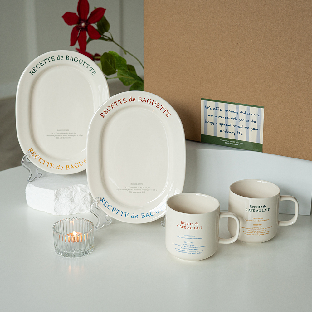 라세라미끄 레시피 레터링 홈카페 테이블 바게트 세트 4P